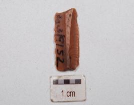 | Description / विवरण | A fragment of blade made on end struck chert flake, flake scars on ventral and partly retouch cutting edges. |