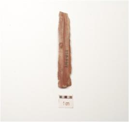 | Description / विवरण | A blade made on chert, double ridge on a dorsal and use wear mark along the cutting edges, trapizoidal in section and borken at distal and proximal end. |