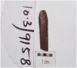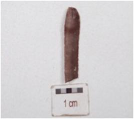 | Description / विवरण | A fragment of blade made on end struck chert flake, bulb on ventral side, double ridge on dorsal, prepared platform partly and retouched cutting edges. |