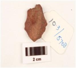 | Description / विवरण | A flake made on chert, blade scars on the surface. |