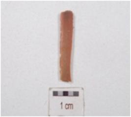 | Description / विवरण | A fragment of blade made on end struck chert flake, double ridge on dorsal side and sharp edges. |