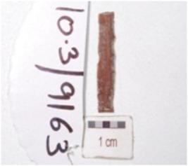 | Description / विवरण | A fragment of blade made on end struck chert flake, flake scars on dorsal side and use wear marks on the cutting edges. |