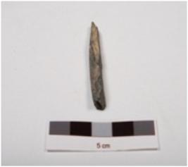 | Description / विवरण | A stone point with square cross section, polished surface and broken from both ends. |