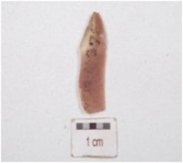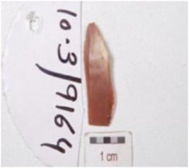 | Description / विवरण | A fragment of blade made on end struck chert flake, bulb on ventral, double ridge on dorsal side, prepared platform, partly retouched cutting edges and use wear marks. |