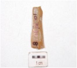 | Description / विवरण | A blade made on chert, end struck flake, bulb absent, sharp cutting edge, blade scars on dorsal and triangular cross section. |
