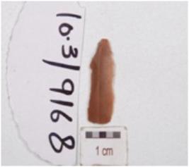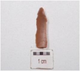 | Description / विवरण | A fragment of blade made on end struck chert flake, bulb on ventral side, flake scars on dorsal side, prepared platform, partly retouched cutting edges and use wear marks. |