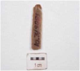 | Description / विवरण | A parallel sided blade made on chert, end struck flake, unprepared platform, prominent bulb on ventral sharp cutting edges, two ridges on dorsal and trapezoidal cross section. |
