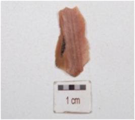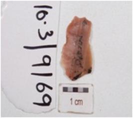 | Description / विवरण | A fragment of blade made on end struck chert flake, bulb on ventral side, flake scars on dorsal side, prepared platform and partly retouched cutting edges. |