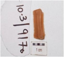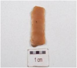 | Description / विवरण | A fragment of blade made on end struck chert flake, double ridge on dorsal side and use wear marks on the cutting edges. |