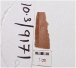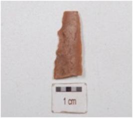 | Description / विवरण | A fragment of blade made on end struck chert flake, flake scars on dorsal side and wavy cutting edges. |