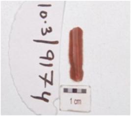 | Description / विवरण | A fragment of blade made on end struck chert flake, double ridge on dorsal side and cutting edges. |
