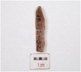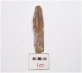 | Description / विवरण | A blade made on chert, end struck flake, prominent bulb on ventral sharp cutting edge, use wear marks on cutting edge, double ridge on dorsal and trapezoidal cross section. |