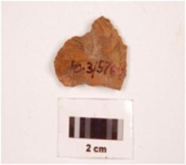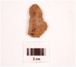 | Description / विवरण | A stone scraper made on chert, used wear marks on edges, diffused bulb on ventral side, prepared platform along with proximal end. |