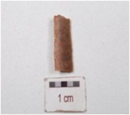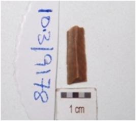 | Description / विवरण | A fragment of blade made on end struck chert flake, ridge on dorsal side and partly retouched cutting edges. |
