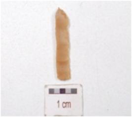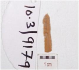 | Description / विवरण | A fragment of blade made on end struck chert flake, ridge on dorsal side and cutting edges. |