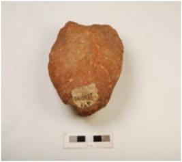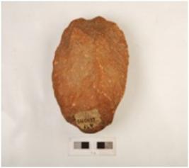 | Description / विवरण | A chopping tool made on quartzite with flake scars on both side and irregularly retouched edges. |