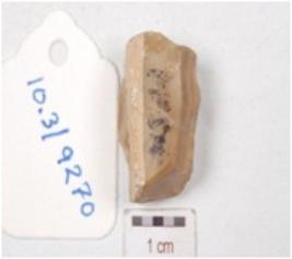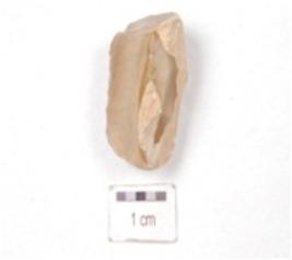 | Description / विवरण | A chert core with prepared platform and blade scars on surface. |