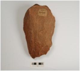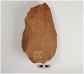 | Description / विवरण | A handaxe made on quartzite flake, flake scars on both side, retouched edges. |