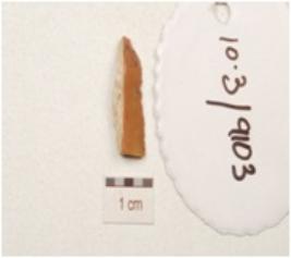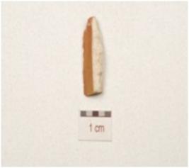 | Description / विवरण | A fragment of blade made on chert, prominent bulb on the ventral and retouched cutting edge, |