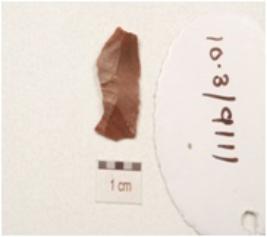 | Description / विवरण | A fragment of blade made on chert, prominent bulb on the ventral ridge on the dorsal and retouched cutting edges. |