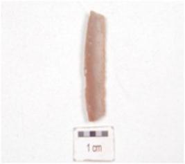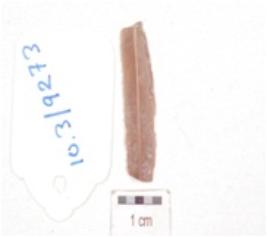 | Description / विवरण | A chert blade, triangular cross section, prepared platform, bulb absent, use-wear marks along the cutting edges and ridge on dorsal. |