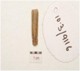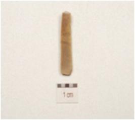 | Description / विवरण | A fragment of blade made on chert, two ridge on the dorsal and use wear marks along the cutting edges. |