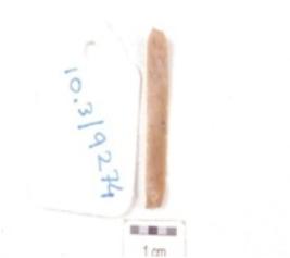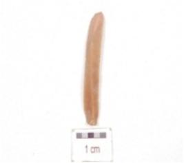| Description / विवरण | A chert blade, triangular cross-section, prepared platform, prominent bulb on ventral and use-wear marks along the cutting edges. |