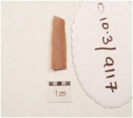 | Description / विवरण | A fragment of blade made on chert, two ridge on the dorsal and retouched cutting edges. |