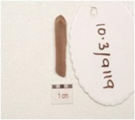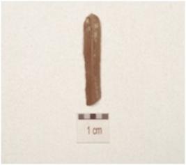 | Description / विवरण | A blade made on chert, prominent bulb on the ventral ridge on the dorsal and use wear marks along the cutting edges. |