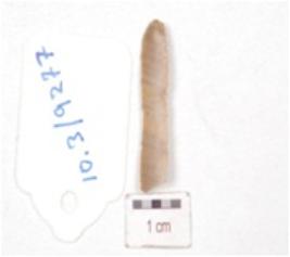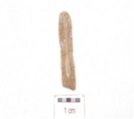 | Description / विवरण | A chert blade, triangular cross-section, prepared platform, bulb on ventral and use-wear marks along the cutting edges. |