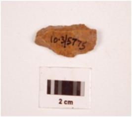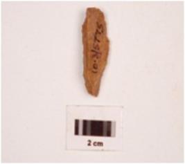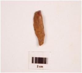| Description / विवरण | A core made on chert, diffused bulb on ventral side along with proximal end, mid ridge on dorsal side, irregular retouching marks on edge. |