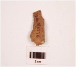 | Description / विवरण | A core made on chert, flake marks on dorsal side, prominent bulb on ventral side along with proximal end, and irregular retouching marks on edge. |