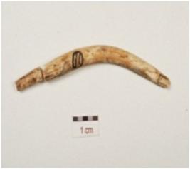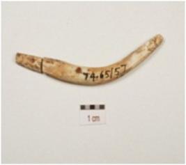| Description / विवरण | A fragment of arrow head made on bone, polished surface, broken in two pieces, slightly bend body, broken both ends and circular cross section. |