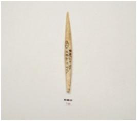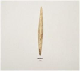| Description / विवरण | A point made on bone, polished and facated surface pointed one end, other end is tanged though pointed and circular cross section. |