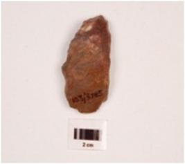| Description / विवरण | A stone core, made on chert with flake scars on its surface, flattened at one end with visible ripple marks. |