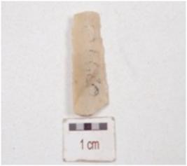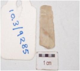 | Description / विवरण | A chert blade, triangular cross-section, broken from proximal end and use-wear marks along the cutting edges. |