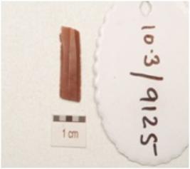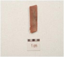 | Description / विवरण | A fragment of blade made on chert, ridge on the dorsal and retouched cutting edges. |