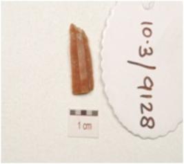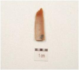 | Description / विवरण | A fragment of blade made on chert, two ridges on the dorsal and use wear marks on the cutting edges. |