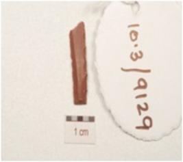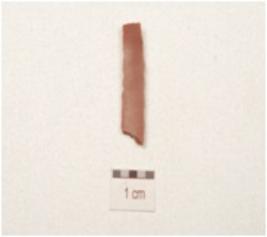| Description / विवरण | A fragment of blade made on chert, ridges on the dorsal and retouched cutting edges. |