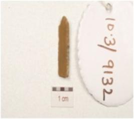 | Description / विवरण | A fragment of blade made on chert, ridge on the dorsal and use wear marks along the cuttinge edges. |