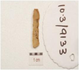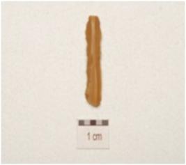 | Description / विवरण | A fragment of blade made on chert, retouched cutting edges and two ridge on the dorsal side. |