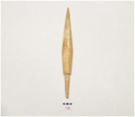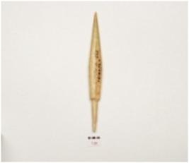 | Description / विवरण | A arrow head made on bone, polished and facated surface, pointed one end, other end is tanged though pointed and triangular cross section. |
