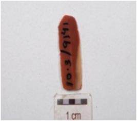 | Description / विवरण | A fragment of blade made on end struck chert flake, bulb on ventral side, ridge on dorsal side, prepared platform and partly retouch cutting edges. |