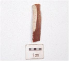 | Description / विवरण | Fragment of a parallel sided blade, made on chert, broken along proximal end, intact distal end, traces of cortex on dorsal side and use-wear marks on cutting edges. |