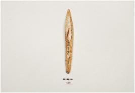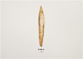 | Description / विवरण | A point made on bone, polished surface, pointed distal end, intact proximal end and diamond shaped cross section. |