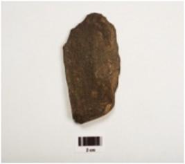 | Description / विवरण | A stone flake with prominent bulb on ventral side, flake scars on dorsal surface and smooth surface. |