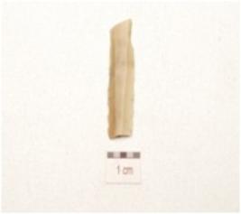 | Description / विवरण | A parallel sided chert blade with double ridge on dorsal, trapezoidal cross section, use wear marks on cutting edge and broken along distal end. |