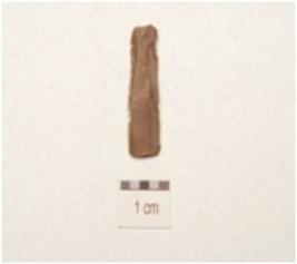 | Description / विवरण | A parallel sided chert blade with double ridge on dorsal, trapezoidal cross section, use wear marks on cutting edge and broken along distal end. |