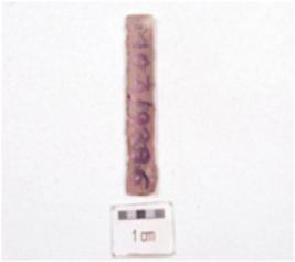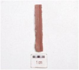 | Description / विवरण | A parallel sided microlithic chert blade with a ridge on the dorsal side, use marks along the cutting edges, partly broken and trapezoidal cross-section. |