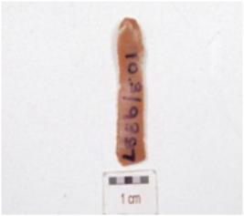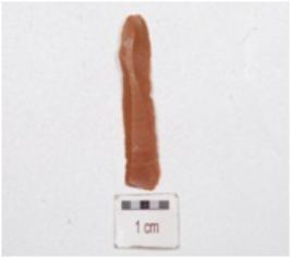 | Description / विवरण | A microlithic chert blade with prominent bulb on the ventral, use marks along the cutting edges, flat cross-section and smooth surface. |